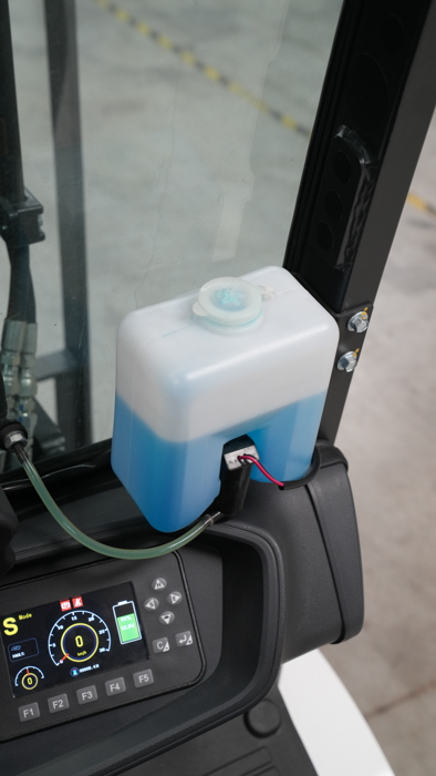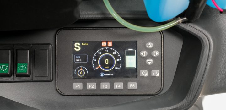 Het grote en kleurrijke display is informatief en biedt de chauffeur standaard drie werkmodi: H (High), S (Standard) en E (Economy) al dan niet in combinatie met een schildpad-modus voor extra beheersing. Bijzonder is de wielstandindicatie van de stuuras. Deze toont de richting van de wielen plus een aanduiding in graden van scheefstand en dat komt niet vaak voor. Daarnaast kent de B25SN een goed werkende curve control, een automatisch werkende parkeerrem en een anti-terugrol systeem voor een veilige inzet op hellingen.