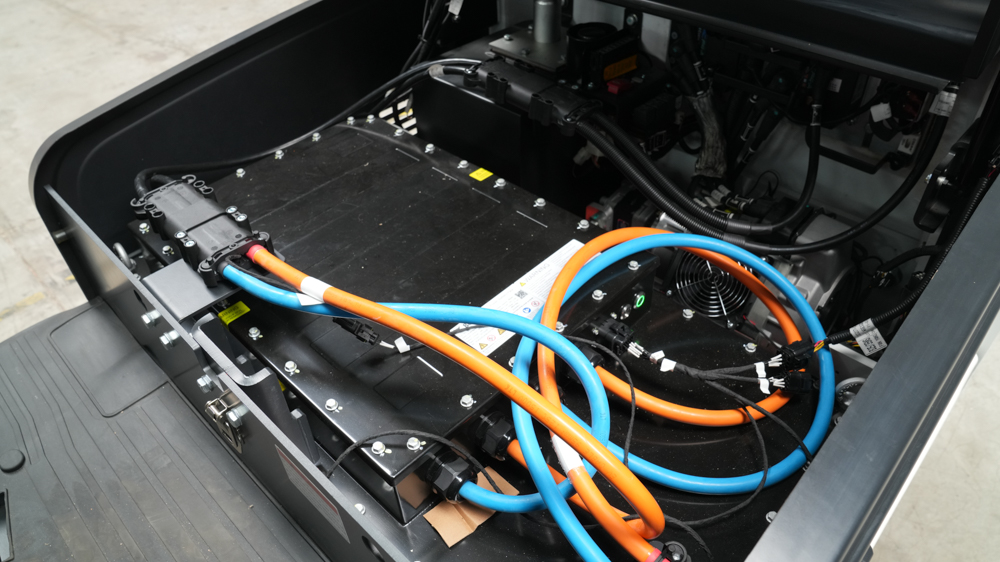 Onze aanbevolen setting zal een merkbaar positief effect op de productiviteit hebben. Met de daarbij verwachte stijging van het energieverbruik zit het wel goed. Dat zal nog steeds gunstig zijn in vergelijking met de concurrentie. We betwijfelen echter of energieverbruik een thema is. De 51 Volt lithium ijzerfosfaat (LFP) accu heeft met 600 A voldoende capaciteit voor een ruime daginzet, ook als die steviger zou zijn. De lithium-ion techniek biedt Bobcat bovendien de alle ruimte om kleinere en dus gunstiger geprijsde li-ion accu’s te plaatsen, waardoor het totale prijskaartje nog aantrekkelijker wordt. Bobcat stelt dat ze binnenkort ook een 400 A versie gaan leveren. Het onderhoudsvrije karakter van de accu plus de mogelijkheid om straffeloos tussentijds te kunnen bijladen zal ook de incidentele gebruiker aanspreken.