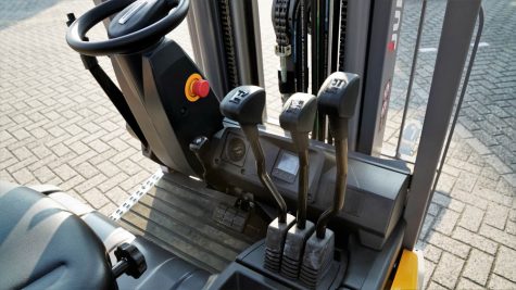 Basic en beproefd: conventionele hendels voor de mastbediening. Op de hendel voor heffen/dalen is de schakelaar voor de rijrichting aangebracht.